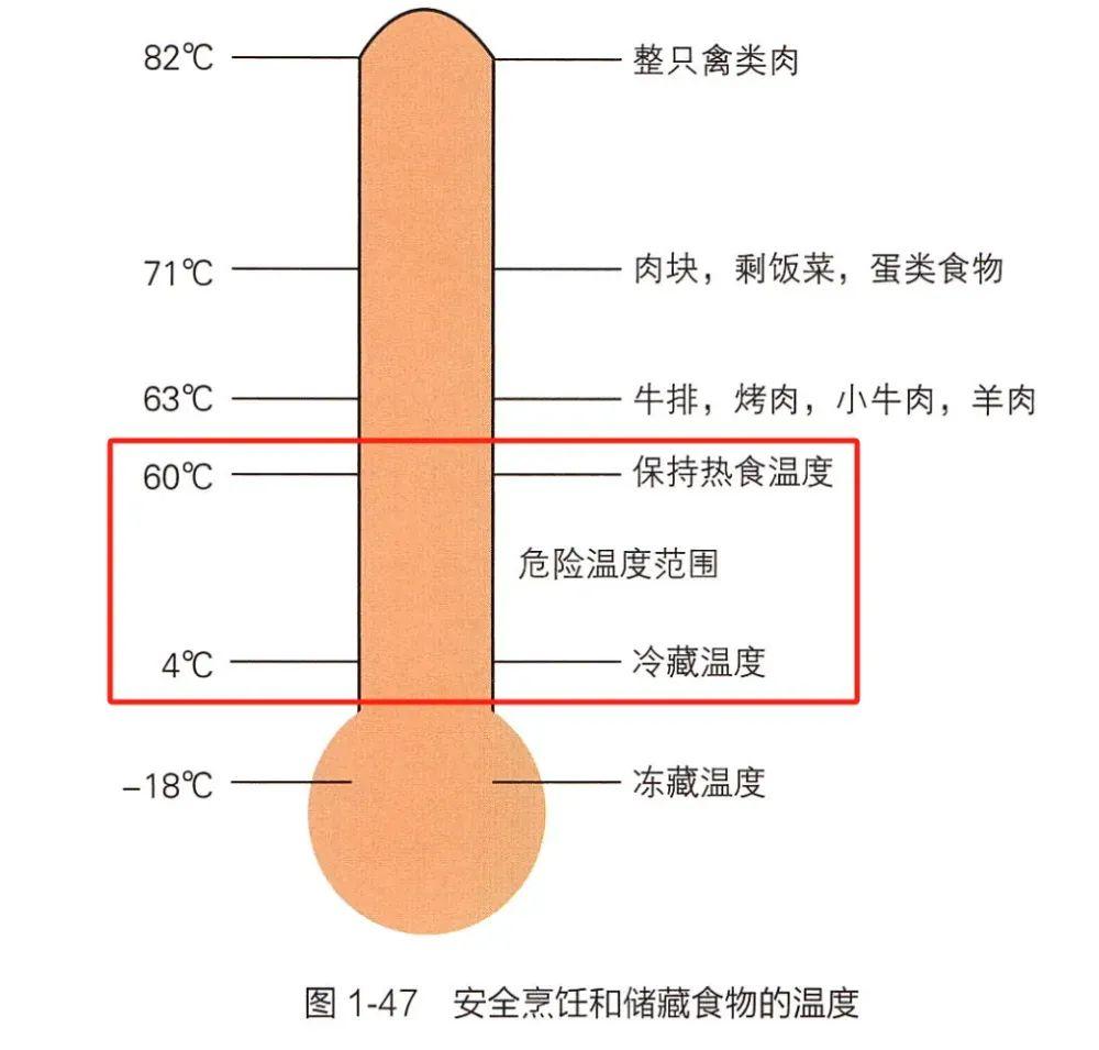 有數據顯示:5~60℃ 屬於危險溫度範圍,[1]最適合細菌生長繁殖,很多細菌在 30℃ 左右的溫度下繁殖更爲活躍。並且,美國食品藥品監督管理局(FDA)的研究提到:在室溫下,導致食源性疾病的細菌數量每 20 分鐘就會翻倍。[2]這意味着,一盤剛出鍋的熱菜如果在室溫下放置 2 小時,細菌數量可能增加 64 倍;如果放置 4 小時,細菌數量可能將暴增至 4000 倍以上!