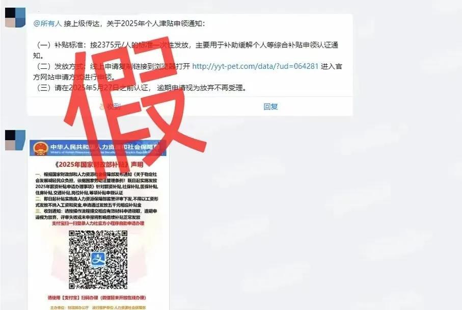近期,重慶大足、榮昌等多地發現“2025個人津貼申領通知”文件及鏈接在網絡社羣廣泛傳播。經覈實,該通知系僞造信息,實爲“銀狐”木馬病毒傳播途徑之一。