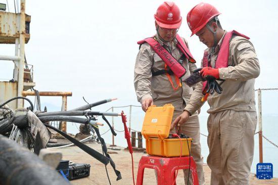 6月1日,搶修人員在現場對故障海纜進行檢測。新華社記者 林善傳 攝