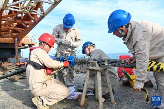 6月1日,搶修人員在固定修復好的海纜接頭。新華社記者 林善傳 攝