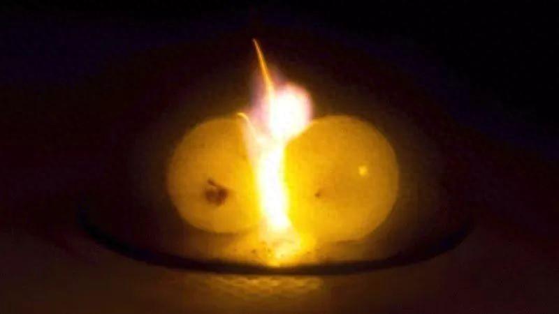 研究者還嘗試了把葡萄一切兩半,但留一點點皮連在一起微波加熱,同樣產生了等離子體。