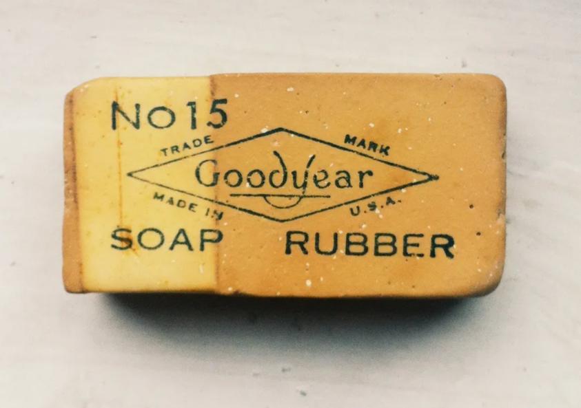 硫化天然橡膠做成的橡皮擦,本身的顏色是鵝黃色到棕黃色丨putitonpaper.bigcartel.com