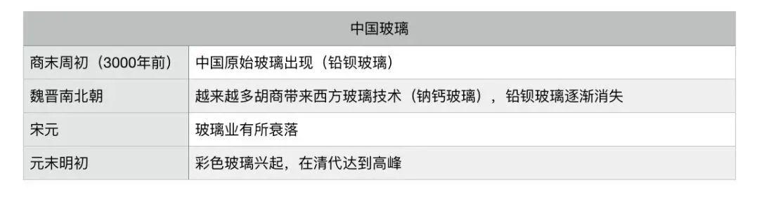 玻璃在中國的發展就是這樣啦,讓我們用一張表格複習一下吧:
