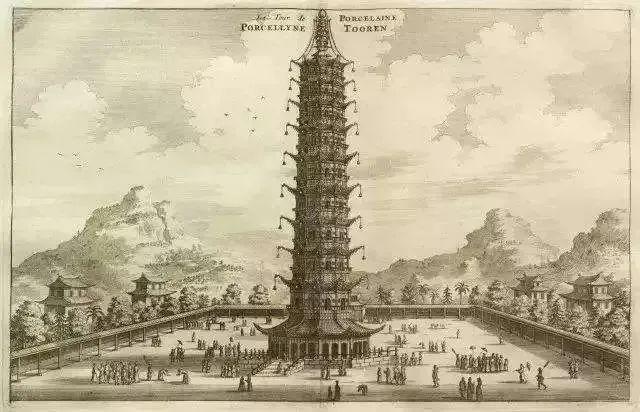 1665年《從荷蘭東印度公司派往韃靼國謁見中國皇帝的外交使團》一書中的大報恩寺塔。約翰·尼霍夫繪製