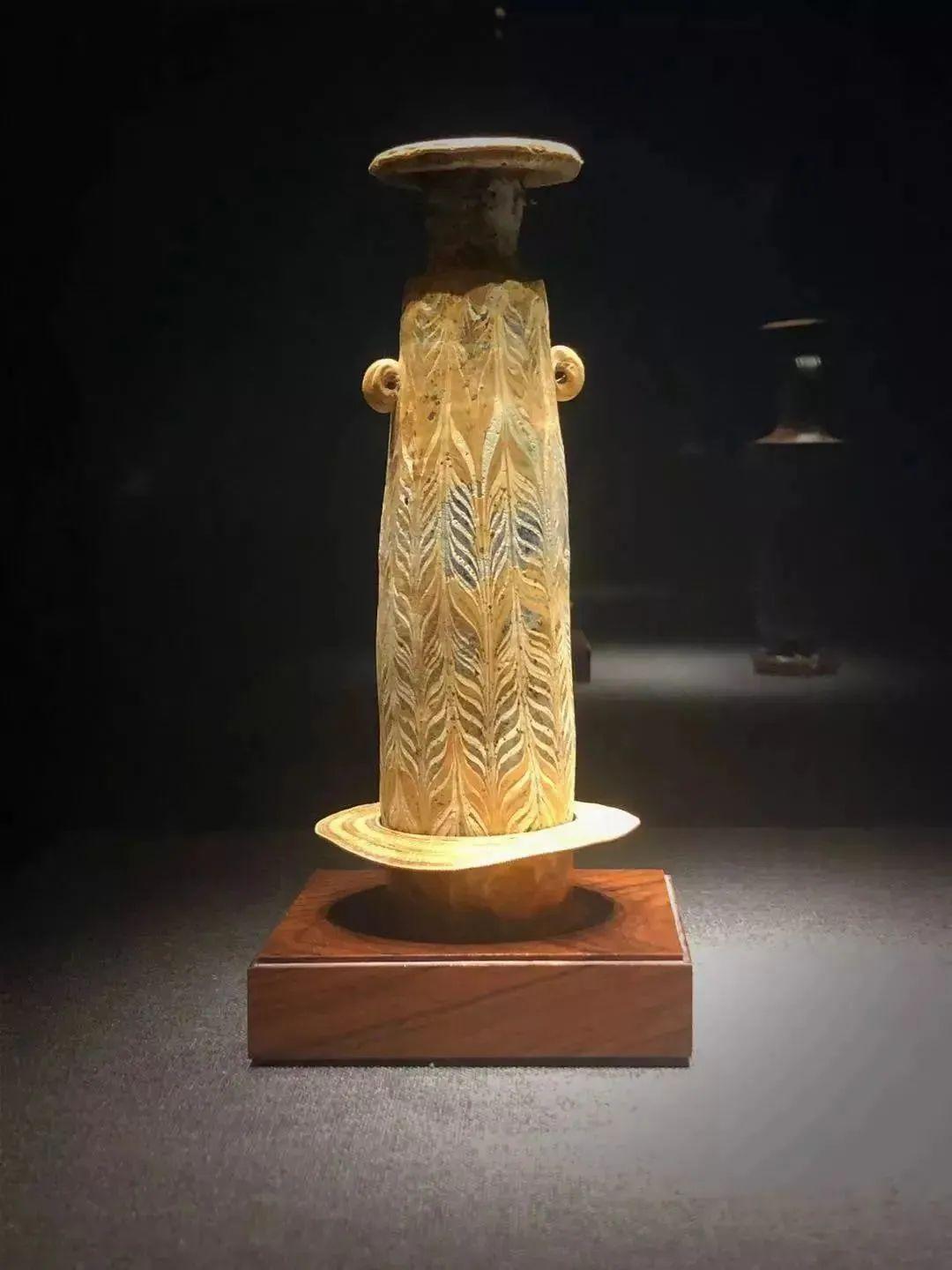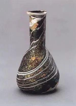 東漢·纏絲紋長頸玻璃瓶。洛陽博物館藏