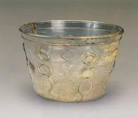 唐·何家村窖藏凸紋玻璃杯。陝西曆史博物館藏