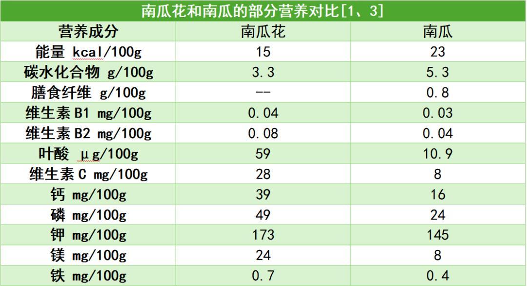 除了以上這些營養,南瓜花的鉀鈣鎂以及維生素 B1、維生素 B2 的含量也都比南瓜高一些。因此,南瓜花不僅喫起來美味,營養價值也不錯!