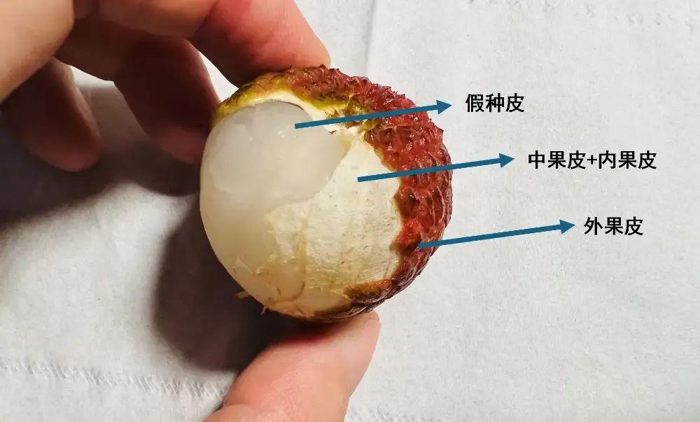 荔枝的果皮結構特殊,由三層組織構成:外果皮含花青素苷的柵狀組織細胞,組織孔隙極多,中果皮是細胞間隙極大的海綿狀組織,極易透水,而內果皮則主要由薄壁細胞組成,缺乏堅實的屏障作用。更關鍵的是,荔枝果肉其實並非生物學意義上的“果肉”,而是種子表面的假種皮,僅通過果柄與果皮相連,這意味着一旦採摘,果皮與果肉之間幾乎無法再進行有效的水分傳導[3]。