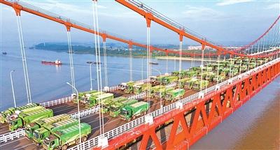 6月4日,安徽銅陵,中鐵橋隧技術公司工程技術團隊有序實施G3銅陵長江公鐵大橋合建段主橋荷載試驗。此次橋樑荷載試驗安排了214輛加載車,最大荷載爲9000多噸。據瞭解,該大橋具有高速公路、城際鐵路、貨運鐵路三種過江功能。圖爲荷載試驗實施現場。