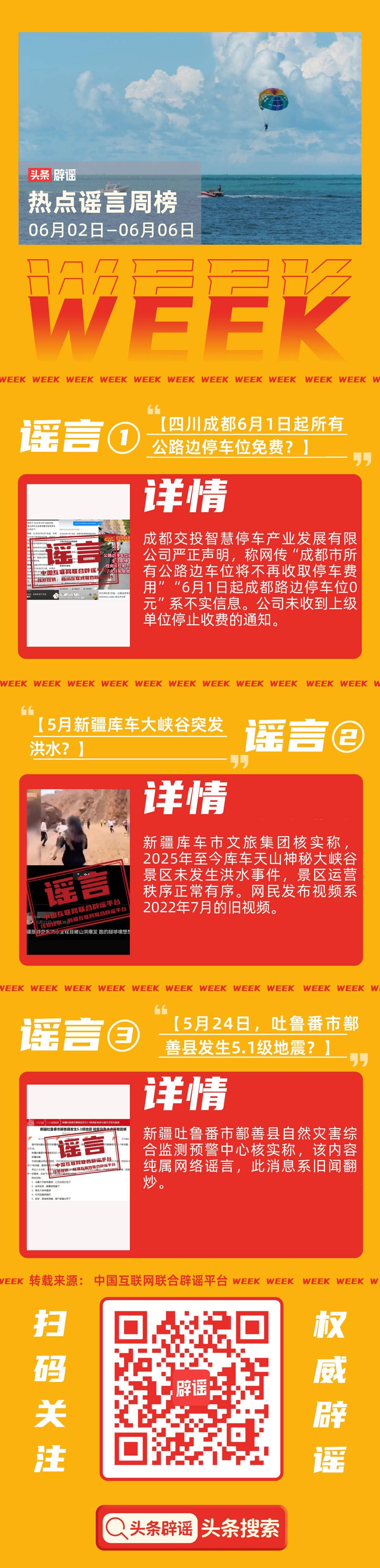 頭條闢謠周榜|成都6月1日起所有公路邊停車位免費?