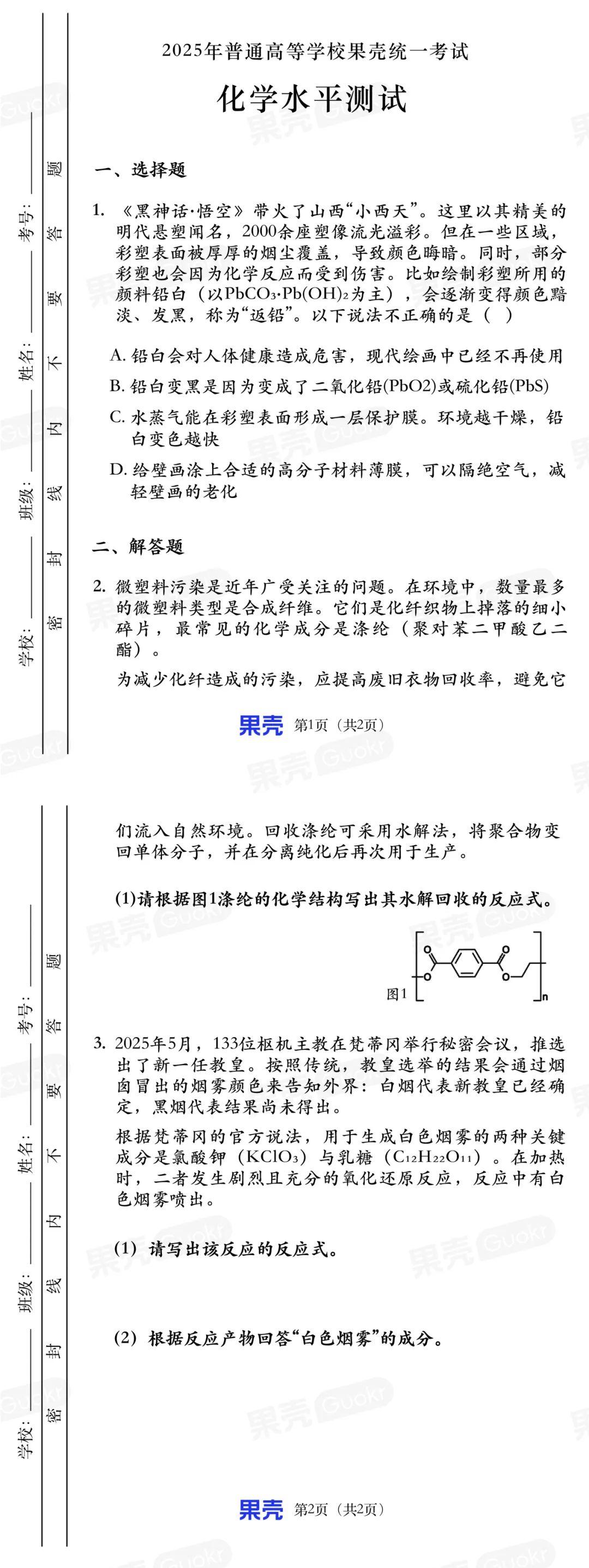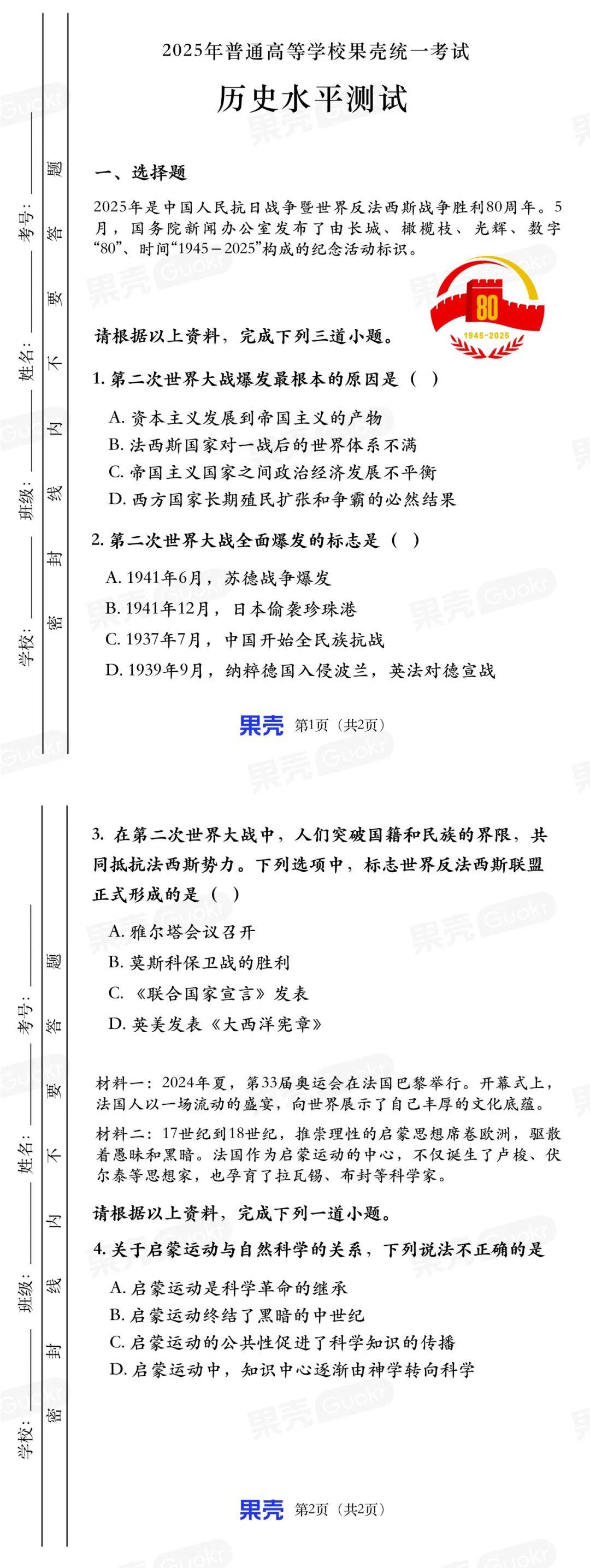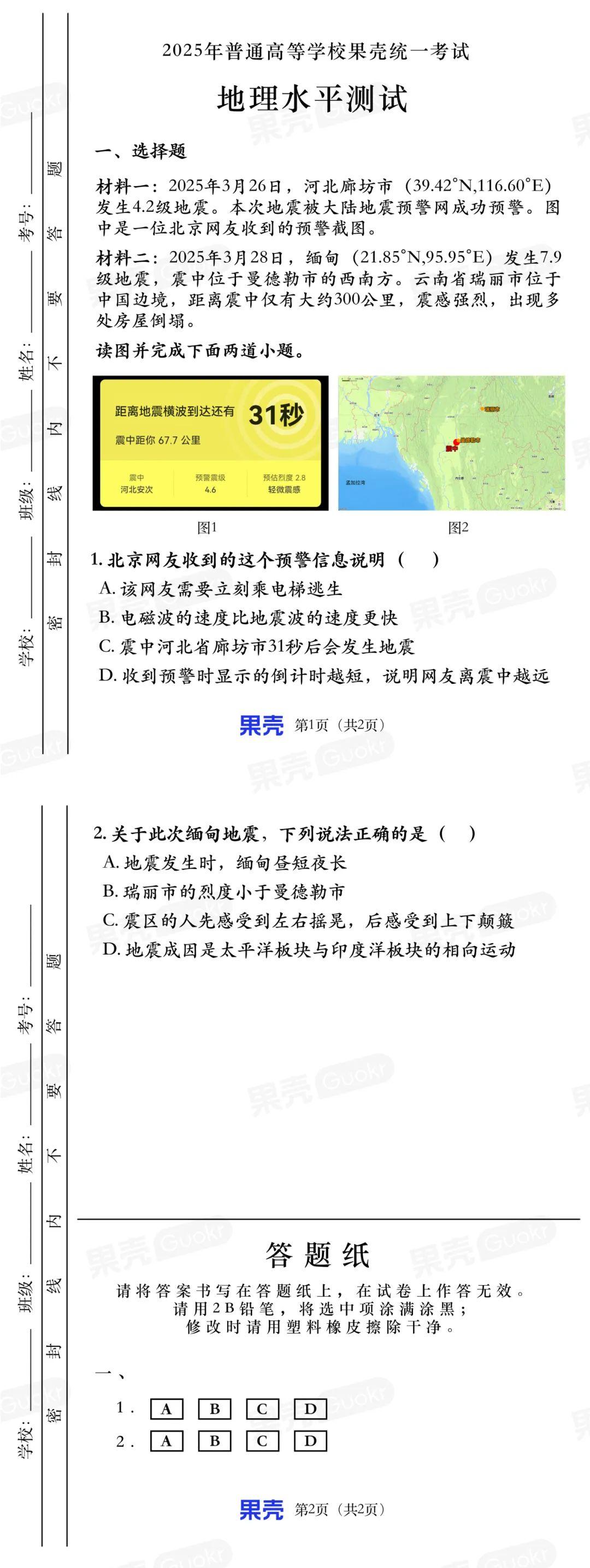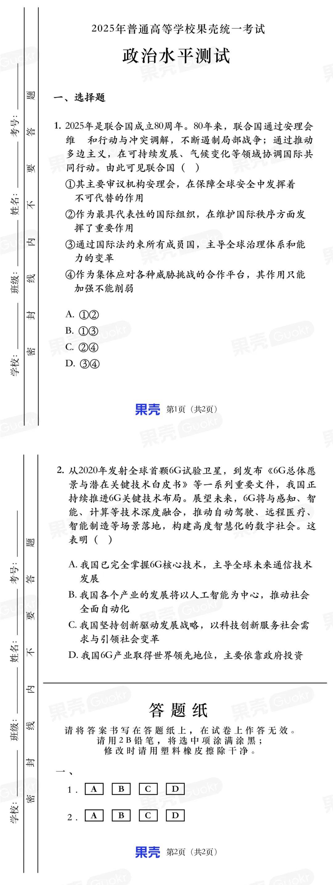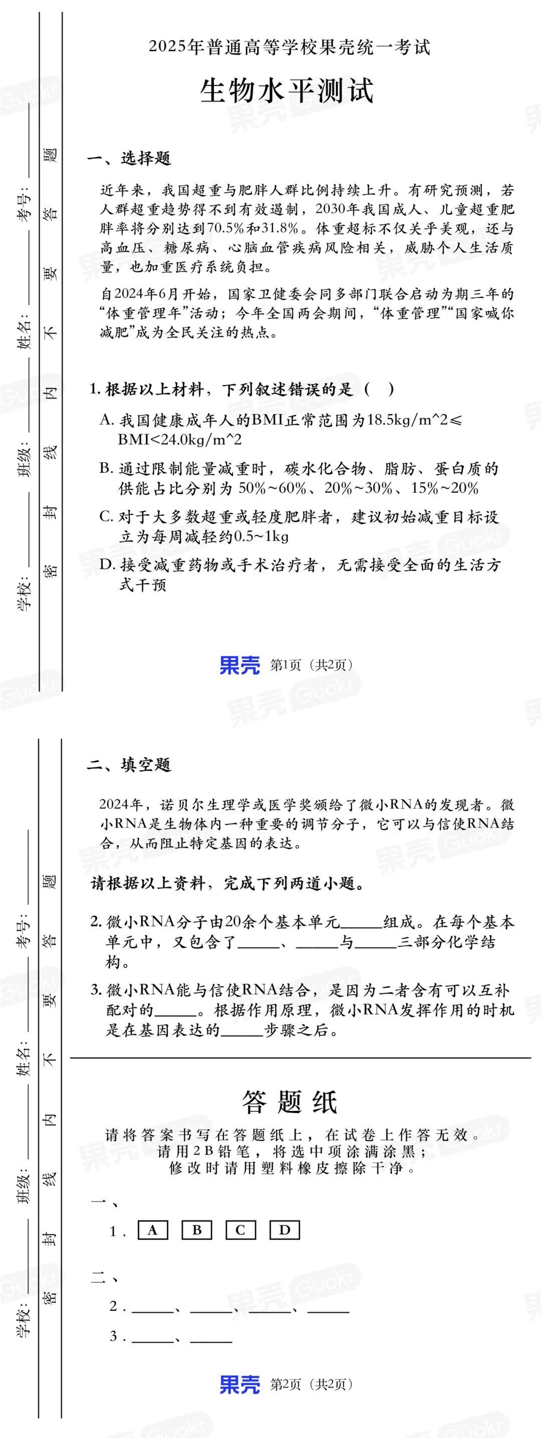 下面就是2025普通高等學校統一考試(果殼版),歡迎在朋友們在工位上進行無關工作的腦力活動,並在評論區遞紙條、對答案。