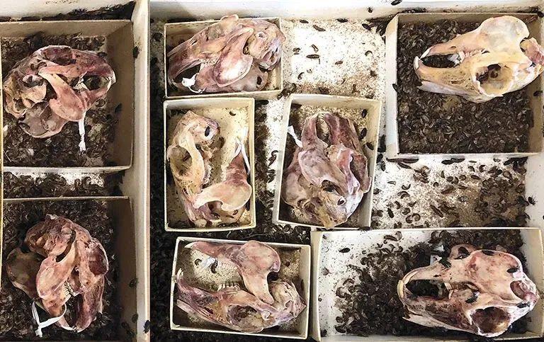 博物館藏品部門的一項重要工作,是爲展覽或科學研究製作動物骨骼標本。但是一些動物的骨骼過於精細,以至於工作人員根本無法用手和工具進行清理,於是他們產生了讓蟲子幫忙的想法。