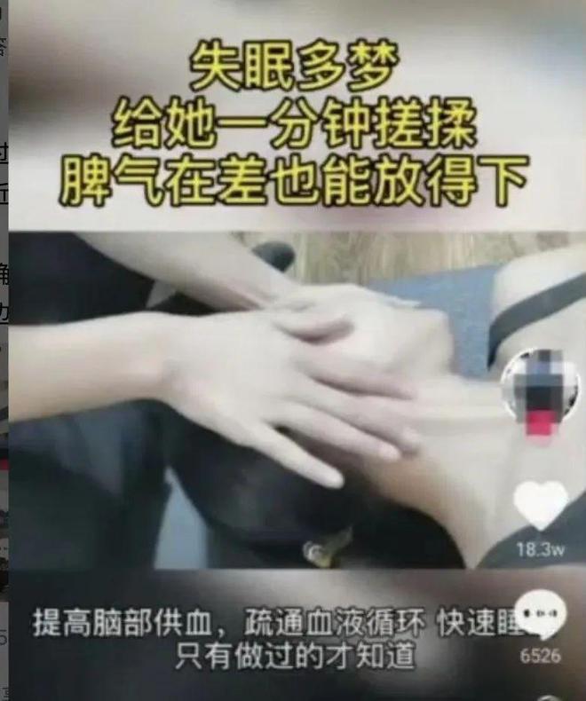 此外,某短視頻平臺上有一段緩解失眠多夢的按摩手法視頻。令人擔憂的是,視頻中竟然推薦按壓並搓揉頸動脈竇區域一分鐘之久,非常危險。這段視頻竟然還獲得了 18.3 萬的點贊,如果身邊有人看過類似的這種視頻,請務必提醒避免嘗試這樣的按摩手法。