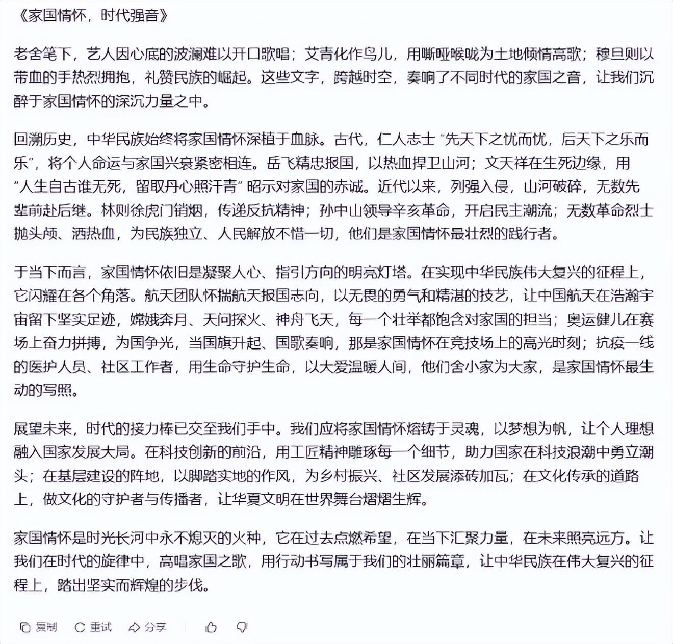 AI 寫作文早不是啥新鮮事了。比起幾年前的稚拙,現在的 AI 寫起文章來已經更加得心應手,只要給它的提示詞合適,那它們還真能寫出挺像模像樣的文章。不僅如此,AI 還能對文章做出品評,指出文章的優點和不足,還有學生根據 AI 的建議修改作文後,獲得了老師的好評。