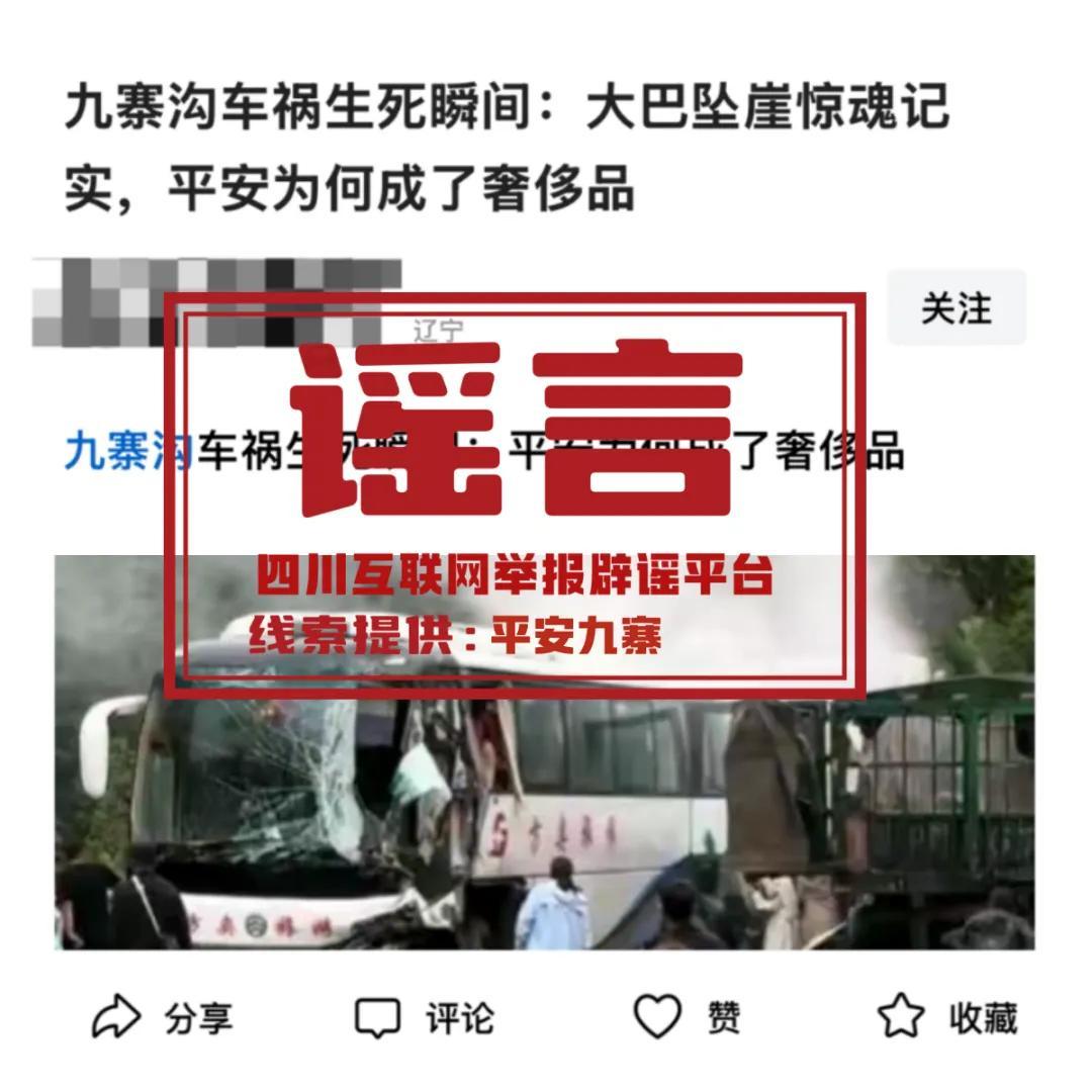 近日,九寨溝縣公安局發現,有網民在網絡平臺發佈題爲《九寨溝車禍生死瞬間,大巴墜崖驚魂實錄,平安爲何成爲奢侈品》的帖文,聲稱“九寨溝景區外環線發生大巴車墜崖交通事故”。經公安機關全面覈查,該信息純屬虛構,繫個別網民惡意編造的謠言。