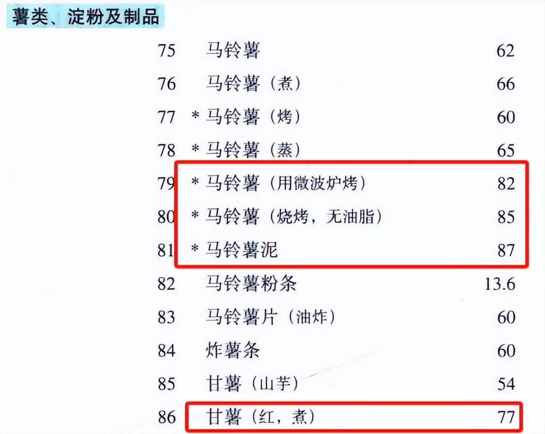 以土豆爲例,完整煮熟的土豆 GI 值約爲 66(中等水平),但當它被加工成土豆泥後,GI 值會飆升至 87,與白米飯、白饅頭相當[1]。