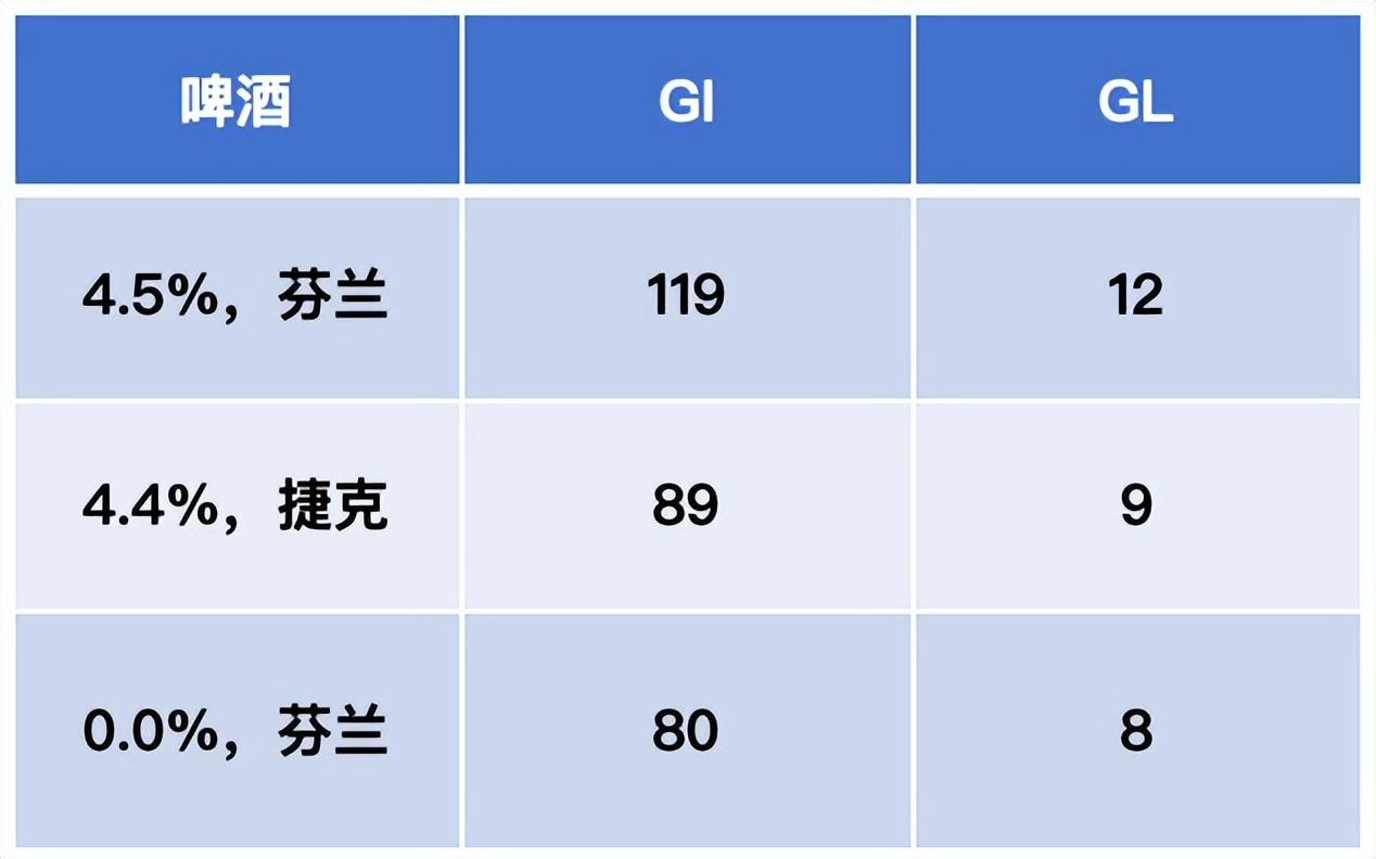 啤酒的血糖生成指數相當高,有的甚至比葡萄糖還要高。雖然啤酒喝起來不甜,但其中的麥芽糖和其他碳水化合物會迅速轉化爲葡萄糖。不信,看看啤酒的升糖能力,甚至有的比葡萄糖還高。(這種飲料喝着不甜,但升糖能力超高!很多人不知道還天天喝)