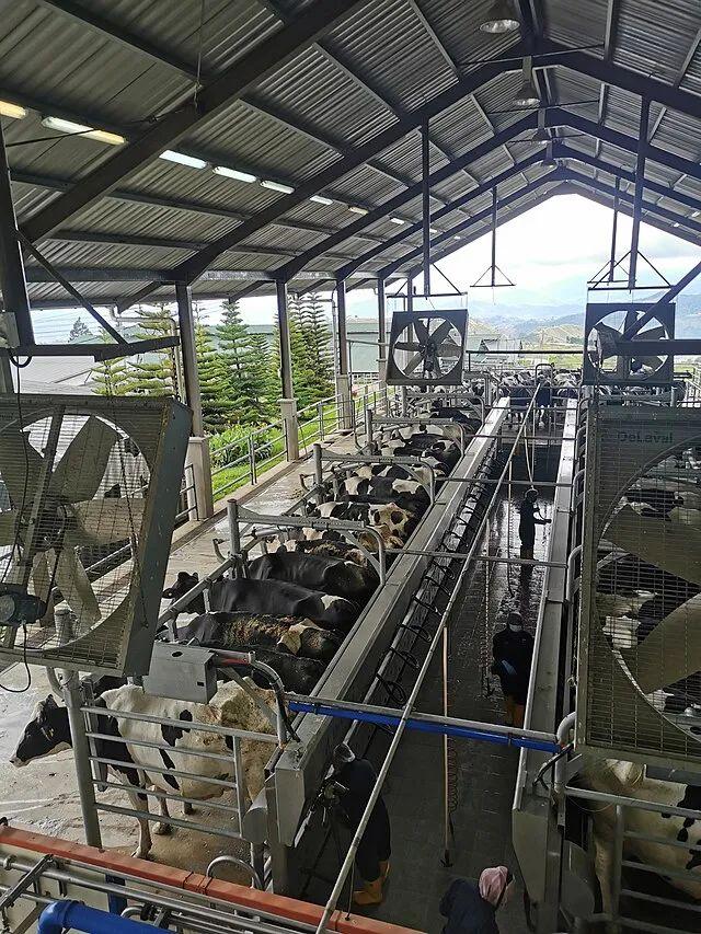 如果要讓奶牛生活在人工光週期下,就不能使用這樣不封閉的牛舍,讓自然光干擾奶牛的節律 | Bfyhdch / Wikimedia Commons