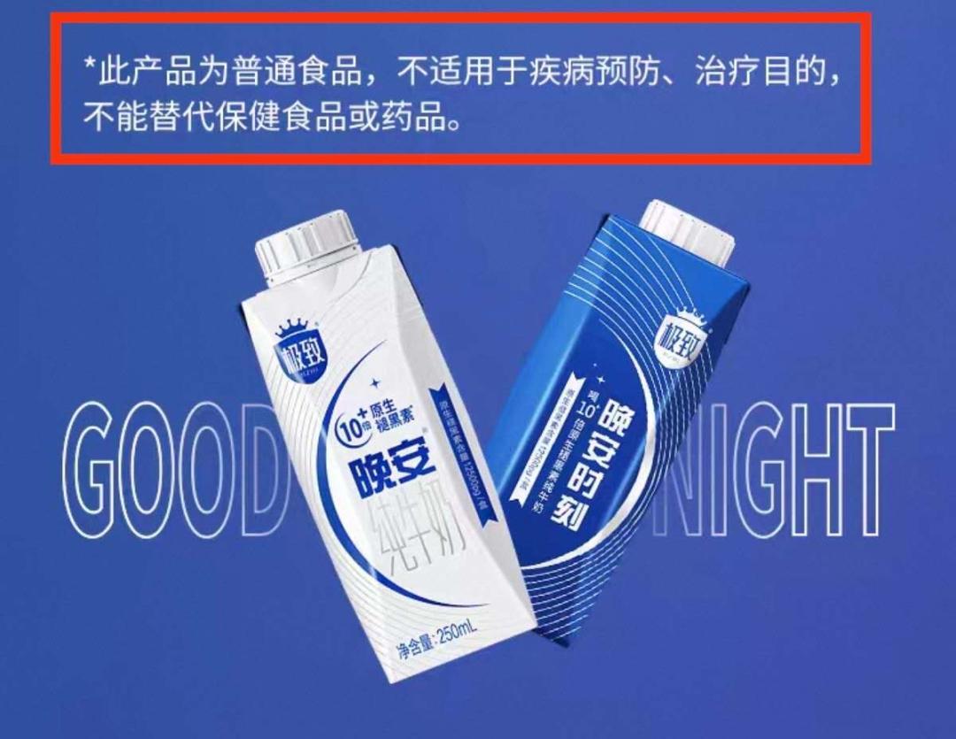 三元的極致晚安奶也一樣,一邊說“晚安”,一邊說自己是普通食品不包療效 | 淘寶@三元食品旗艦店