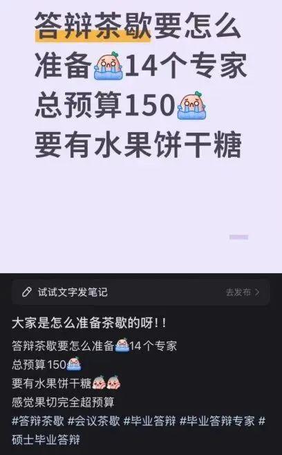 不過,答辯這事光是注重內容還不夠,心思縝密的朋友們往往會考慮到整場答辯的方方面面,從答辯預熱、到茶歇準備再到個人穿搭選擇,一個都不敢疏忽。