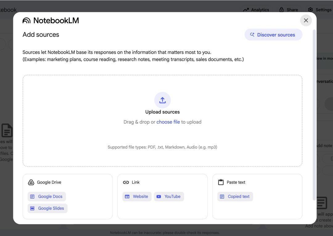同我們這兩年已經習慣的 AI 問答機器人不同,當我們輸入一個問題,NotebookLM 會要求你先把掌握的多媒體素材上傳了,再提問題,它是 source-grounded 的,只會根據你上傳的知識作答。就是這麼一款由 AI 驅動的筆記產品,翻紅了。