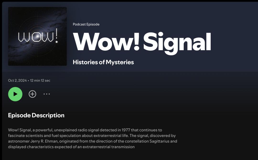 Histories of Mysteries 的其中一集,講述了“wow! 信號”的故事