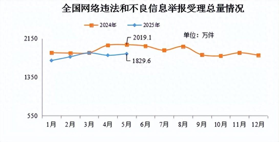 2025年5月全國受理網絡違法和不良信息舉報1829.6萬件