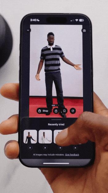不過最近我在 Google I/O 上看到,Google 針對電商購物,推出了一個“Try On(試穿)”AI 功能。