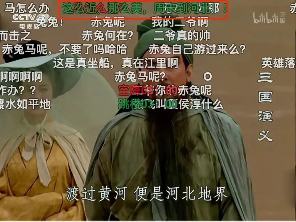 在b站播放《三國演義》,關羽千里走單騎,渡黃河到北面尋找劉備時,彈幕沸騰了。