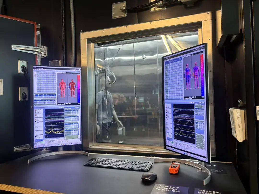 在樓頂的耐克運動研究實驗室(NSRL)中:400臺攝像機組成的世界最大動作捕捉系統,記錄下每一次運動員落地的角度與受力變化;97塊受力板嵌入的跑道,可以測量步頻、推進力與穩定性;而3個氣候實驗室,能夠模擬全球幾乎任何比賽環境,從溼熱的非洲草原,到寒冷的北歐賽道。