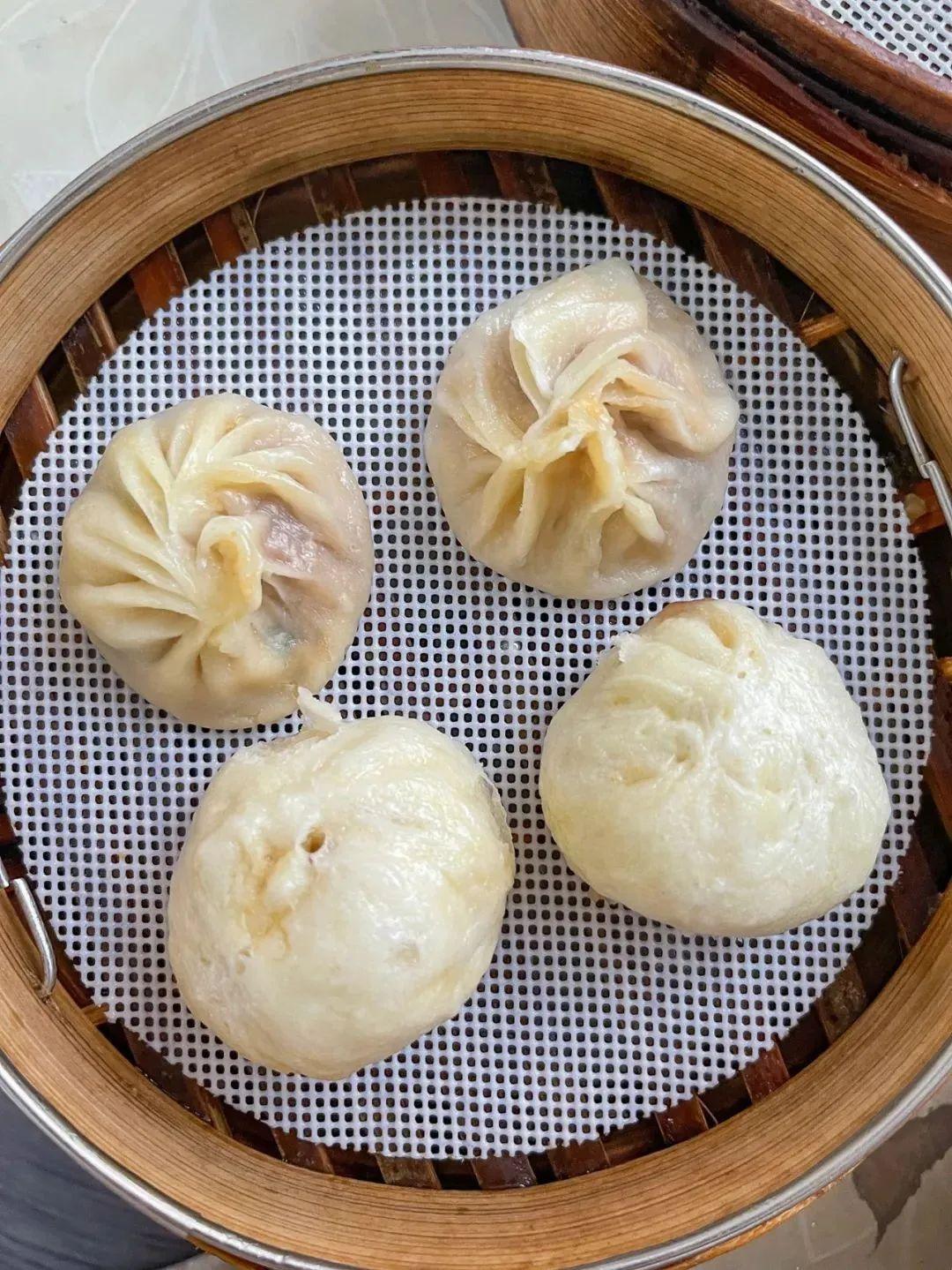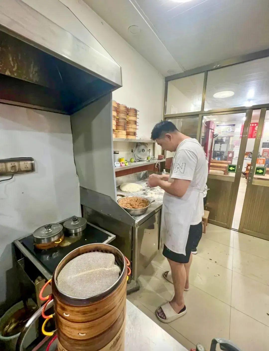 喫完司機師傅推薦的年糕再埋頭工作了會,抬頭已經是晚上8、9點。想起來餓的時候,已經沒什麼店鋪開門。酒店附近有家叫“不打烊包子”,就去碰了碰運氣。對江浙人而言,鮮肉包(也就是外面的“杭州小籠包”)通常是早餐,店鋪大多也會在下午2點前打烊。能在晚上喫到現蒸的小籠包倒是個獨特的體驗。
