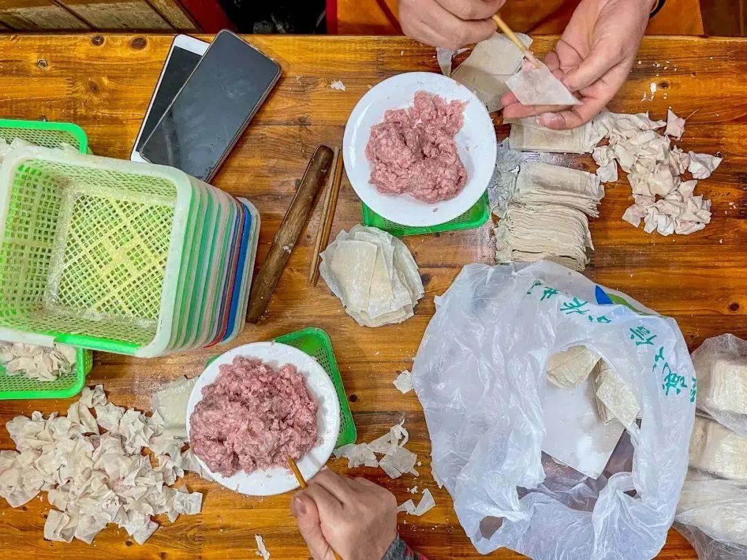 本地特別的豆腐餡兒小包呢?又是更後來的創意了。嵊州本就有炒年糕做羹裏放嫩豆腐的傳統,嫩豆腐作爲家常輔料更是無處不在。2000年初,在嵊州下的黃澤鎮,有幾家店決定開始自我革新,而後這種加了豆腐的小包子,又用同樣的方式,傳遍了整個嵊州。