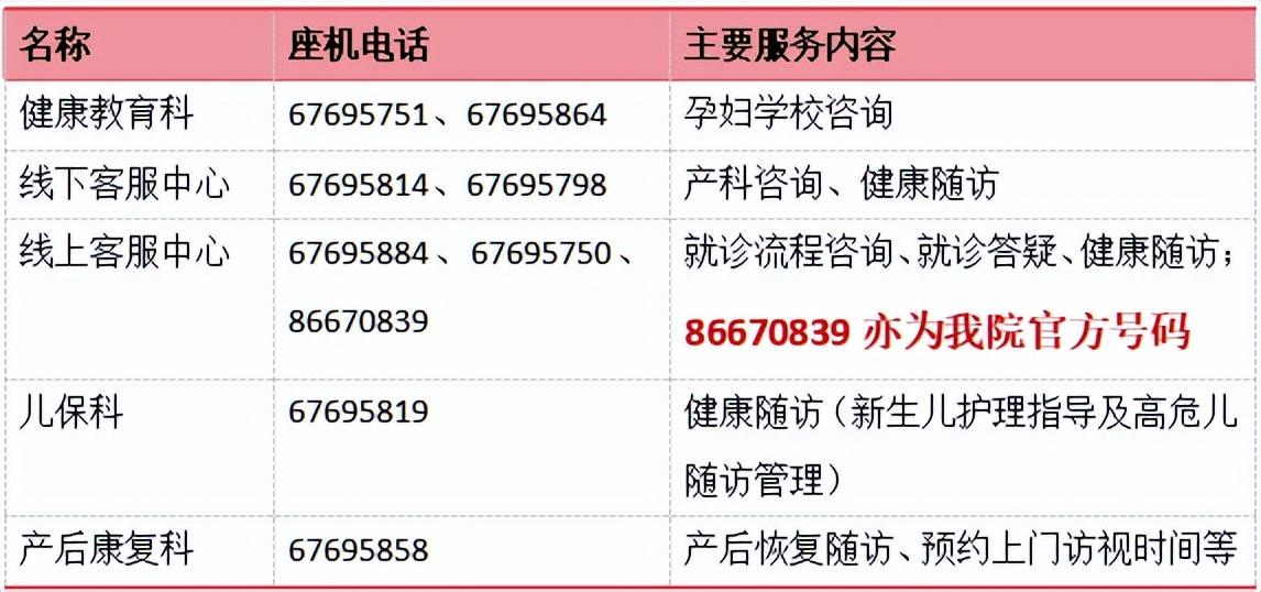 3、我院各部門官方聯繫方式僅限下表所列座機號碼。我院官方座機號碼均以“028-6769”開頭。我院官方客服微信均爲“錦江婦幼保健院”企業微信認證賬號,請注意甄別。