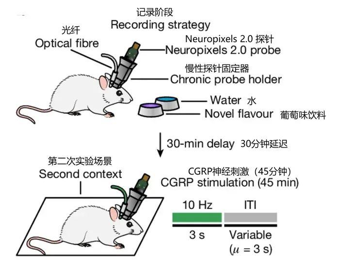 大腦的“記憶鞏固”並不像電腦那樣可以一鍵保存,而是一個需要“重複確認”的過程。在這項研究中,科學家通過一種先進的 Neuropixels 2.0 探針技術,從小鼠“進食”到“生病”再到“回憶”,對中央杏仁核的單個神經元進行長時間記錄,實時觀察它們在整個過程中的活躍情況。