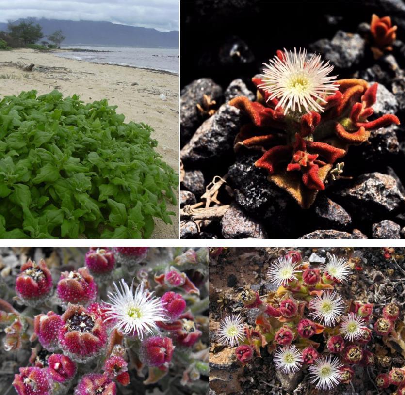 冰菜是番杏科的植物,來自乾旱的非洲南部。爲了適應環境,冰菜進化出了耐鹽鹼、耐貧瘠的特性,在海邊沙灘上也能頑強地紮根存活。其實,冰菜的花也很美觀,本來可以作爲觀賞植物,但在作爲蔬菜種植時,通常在它開花之前就採摘下來了。