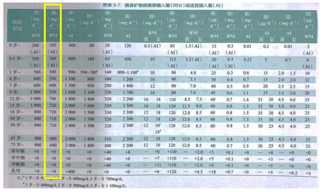 而根據《中國居民膳食營養素參考攝入量(DRIs 2023 版)》,成人每日推薦磷攝入量(RNI)爲 680-720 mg,可耐受最高攝入量(UL)爲 3500 mg/天。