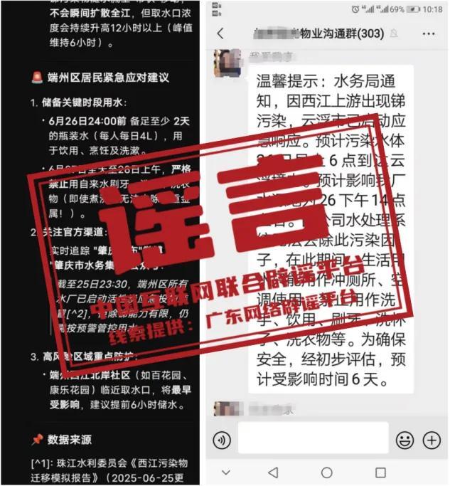 詳情:近日,受暴雨洪水沖刷尾礦影響,廣西境內柳江出現銻濃度異常情況,網上隨之出現“廣東肇慶、雲浮水源被污染無法飲用”等信息。經覈查,上述網傳信息系謠言。6月26日,廣東肇慶、雲浮均發佈通報稱,目前西江肇慶段、雲浮段及飲用水源水質均正常,肇慶西江沿線各水廠、雲浮各水廠出水水質均達到生活飲用水衛生標準,兩市供水正常。目前,肇慶市、雲浮市已及時啓動突發環境事件Ⅲ級應急響應,加強水質應急監測,科學應對處置。請廣大市民及時關注官方權威發佈,不要恐慌,不信謠、不傳謠。(來源:“廣東發佈”微信公衆號、“廣東省互聯網舉報中心”微信公衆號、@中國新聞週刊)
