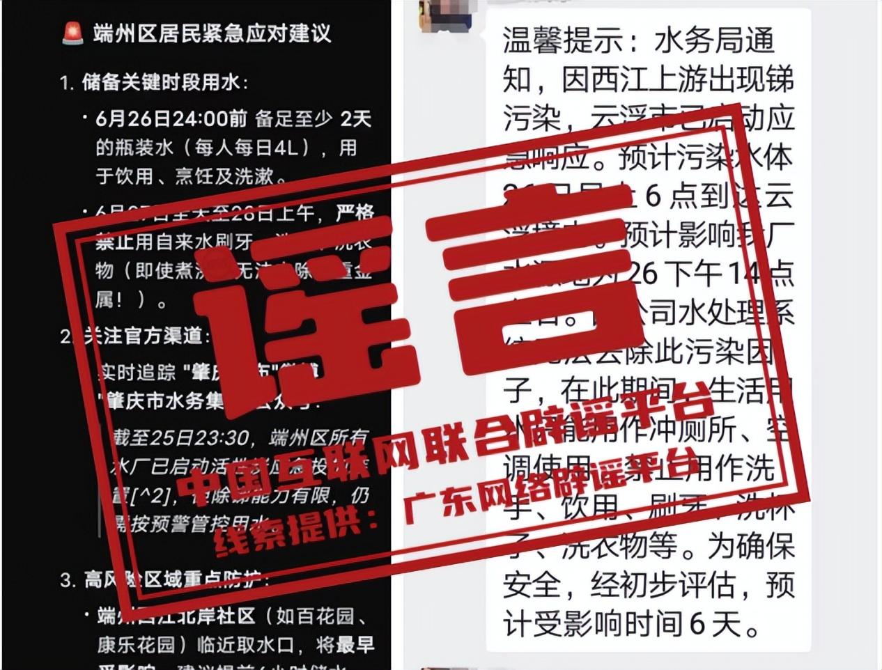 今日闢謠|廣東肇慶、雲浮水源被污染無法飲用?