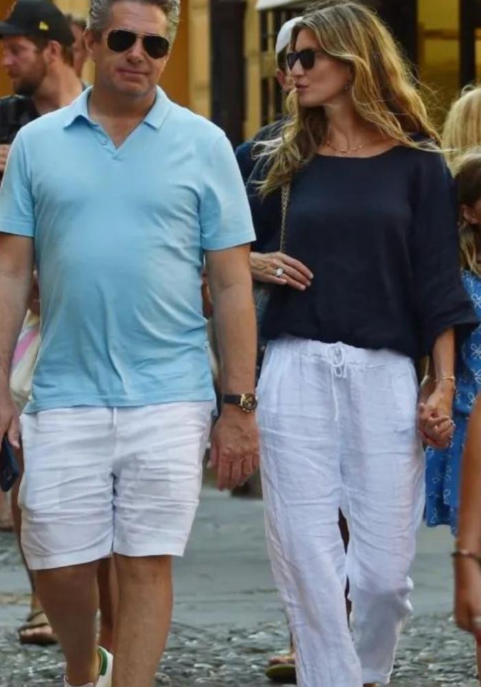 知名模特吉賽爾·邦辰在海邊城市度假穿着亞麻褲子。