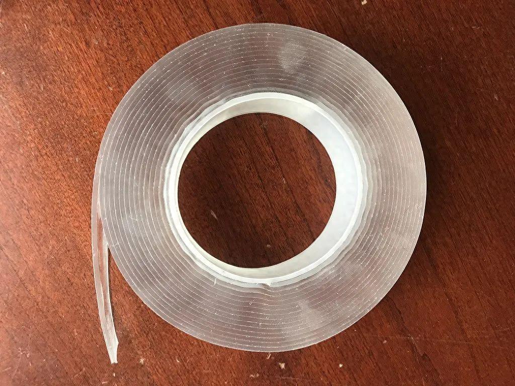 這是一種柔軟而透明的新式雙面膠帶,在廣告宣傳中,它的賣點是擁有“牆倒都不掉”的驚人粘合力,同時還能無痕撕除。從固定各種出租屋收納神器,到貼春聯、粘攝像頭、扎痛包、製作捏捏玩具,神奇的“納米膠帶”似乎無所不能。