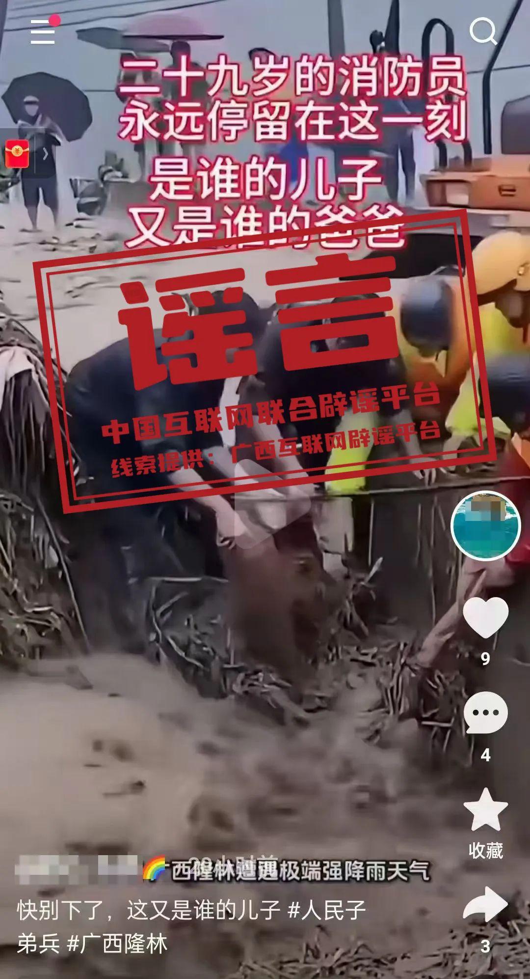 闢 謠 網傳院士預測廣東將發生8級以上大地震?謠言!已報警詳情:近日,一張“院士預測廣東將發生8級以上大地震”的截圖在網絡上流傳。截圖顯示,名稱爲“倪四道”的用戶稱,“團隊預測8個月內,將會在一經緯度位置(位於廣東)出現八級以上地震。”倪四道是中國科學院院士,地球物理學家,主要從事地震學研究,目前擔任中國科學院精密測量科學與技術創新研究院副院長。中國地震局相關人士表示,這則截圖中的信息沒有任何科學依據,顯然是有人藉着倪院士的名字在造謠。對於網傳信息,倪四道院士團隊的工作人員表示,已經注意到相關截圖,內容並非倪四道院士發佈,目前團隊已經報警。(來源:“廣東省互聯網舉報中心”微信公衆號) 闢 謠 網傳“一名消防員在廣西隆林抗洪救援任務中犧牲”爲不實信息