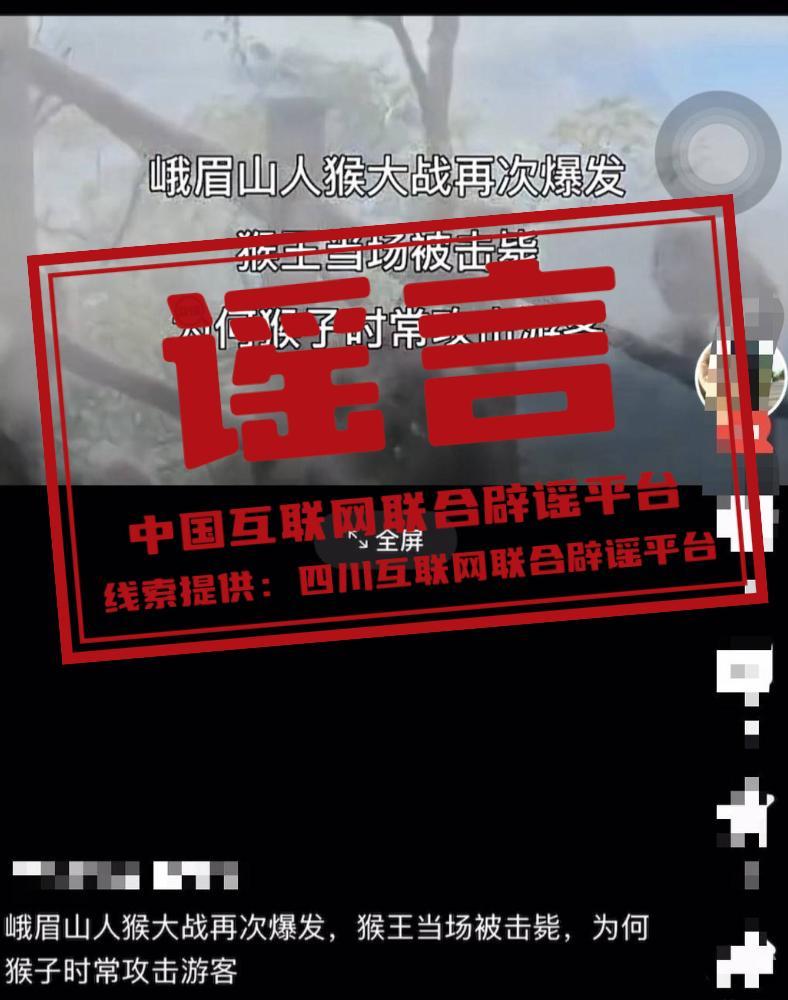 闢 謠 “四川峨眉山人猴大戰,猴王被當場擊斃”系謠言