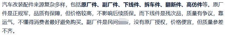 有前文介紹的零散消費者被“中傷”,也有線上線下大渠道改裝件的來源質疑。