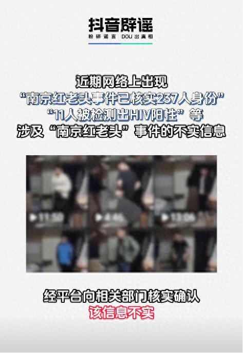 南京紅老頭事件已覈實237人身份?抖音:不實、已處置謠言1.4萬餘條