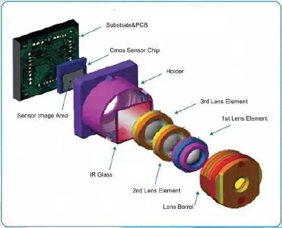 電腦、手機等設備的攝像頭拆解圖,其中的IR Glass負責濾掉紅外線