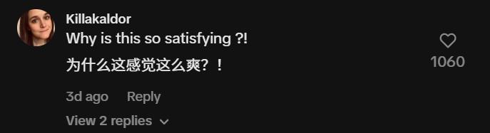 這些看起來都是些不痛不癢、輕飄飄的內容。你甚至能一眼看出它是 AI 做的,因爲畫面不夠真實,質感過於完美。但評論區裏,觀衆卻絲毫不在意,甚至喊着“求更新”“太解壓了”。