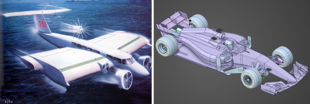 地效翼船(eworldship.com)與F1賽車模型(PERRINN團隊)