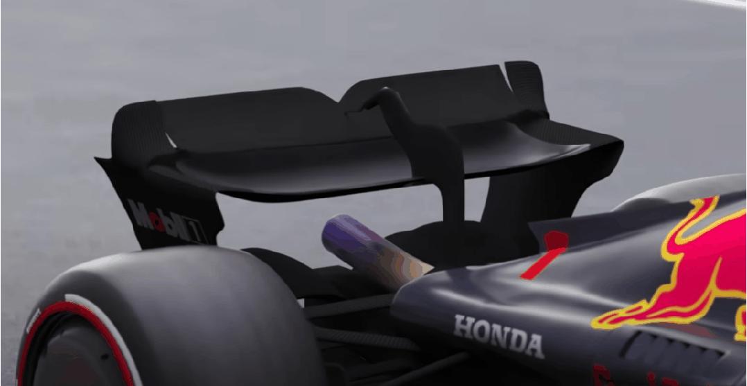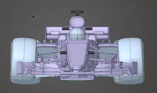 尾翼的設計比前翼更爲關鍵。因爲F1賽車採用後輪驅動,後輪的抓地力直接影響動力釋放效率(+X)。尾翼通過與飛機機翼相反的設計,使高速掠過的空氣形成向下的壓力(−Z)。在電影中我們可以看到幾處特寫鏡頭,尾翼還擁有顯著的攻角(迎角),以此增強下壓力,提高後輪抓地力。