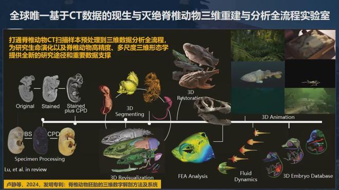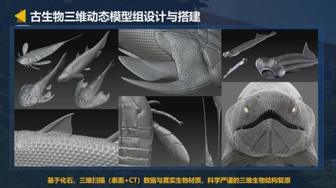 其中一項非常重要的工作就是,利用最新的 CT 掃描技術,對掃描結果進行三維重建,並對所有古生物進行科學而精確的形態復原。在此基礎上,進一步優化這些模型,開展分析,甚至涉及材料學方面的深入研究。同時,建立了一個龐大的三維模型數據庫,供全球學者共同研究脊椎動物的演化過程。