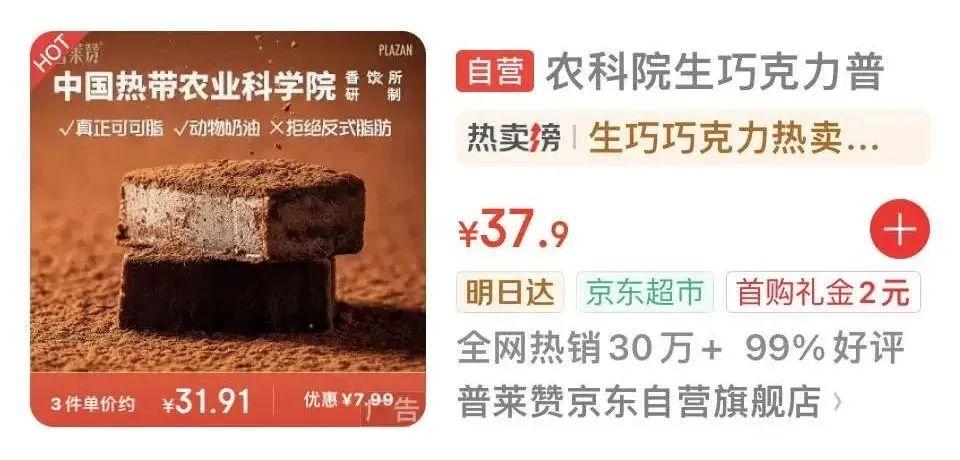 在京東電商,中國熱帶農業科學院的生巧克力熱銷30萬;好利來生巧克力禮盒於2018年推出,至今仍在電商平臺獲得10萬+評價,數年間好評不斷。